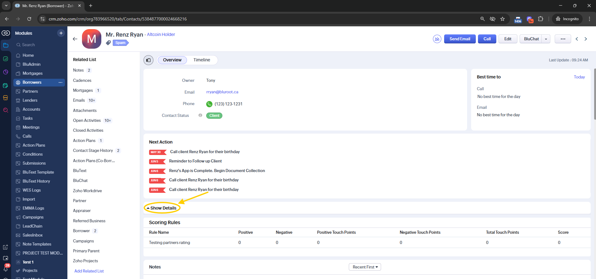 Note* This feature is the exact same in the contact, account, mortgage, lender and all other modules. So if you are not seeing the data you thought you would see, try clicking the "Show Details" text.